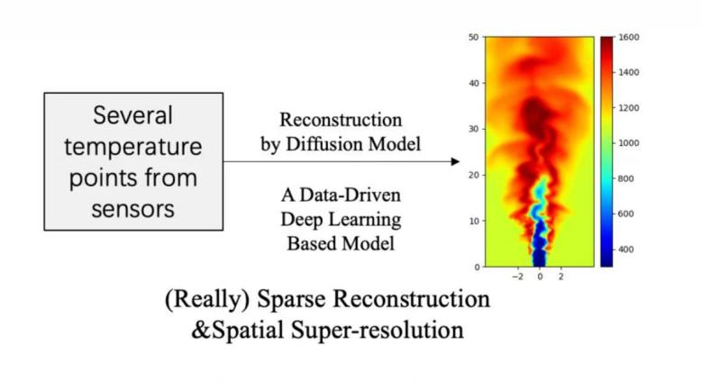 基于深度学习的湍流火焰场时空超分辨率重建方法:湍流燃烧建模对提升能源效率和控制污染物至关重要,但传统实验数据稀疏、数值模拟成本高。本项目利用生成式AI,构建物理约束的条件深度生成模型,从稀疏多模态数据重建高分辨率物理场,实现精确时序预测和平均场快速求解,突破传统CFD瓶颈,为燃烧器设计提供高效新方案。